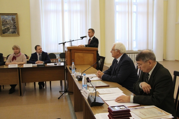 Наградной документ парламентарию на заседании Ученого совета Томского государственного архитектурно-строительного университета вручил сенатор Владимир Кравченко.