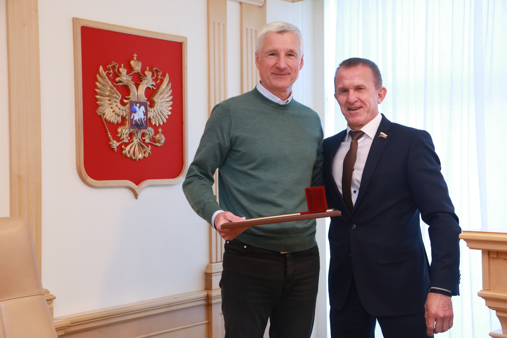 Председатель облдумы Оксана Козловская от всего депутатского корпуса поздравила депутата Геннадия Сергеенко с получением высокой государственной награды. Указом Президента РФ Владимира Путина № 423 от 21 мая 2024 года за заслуги в области сельского хозяйства и многолетнюю добросовестную работу Геннадий Сергеенко награжден орденом Почета.