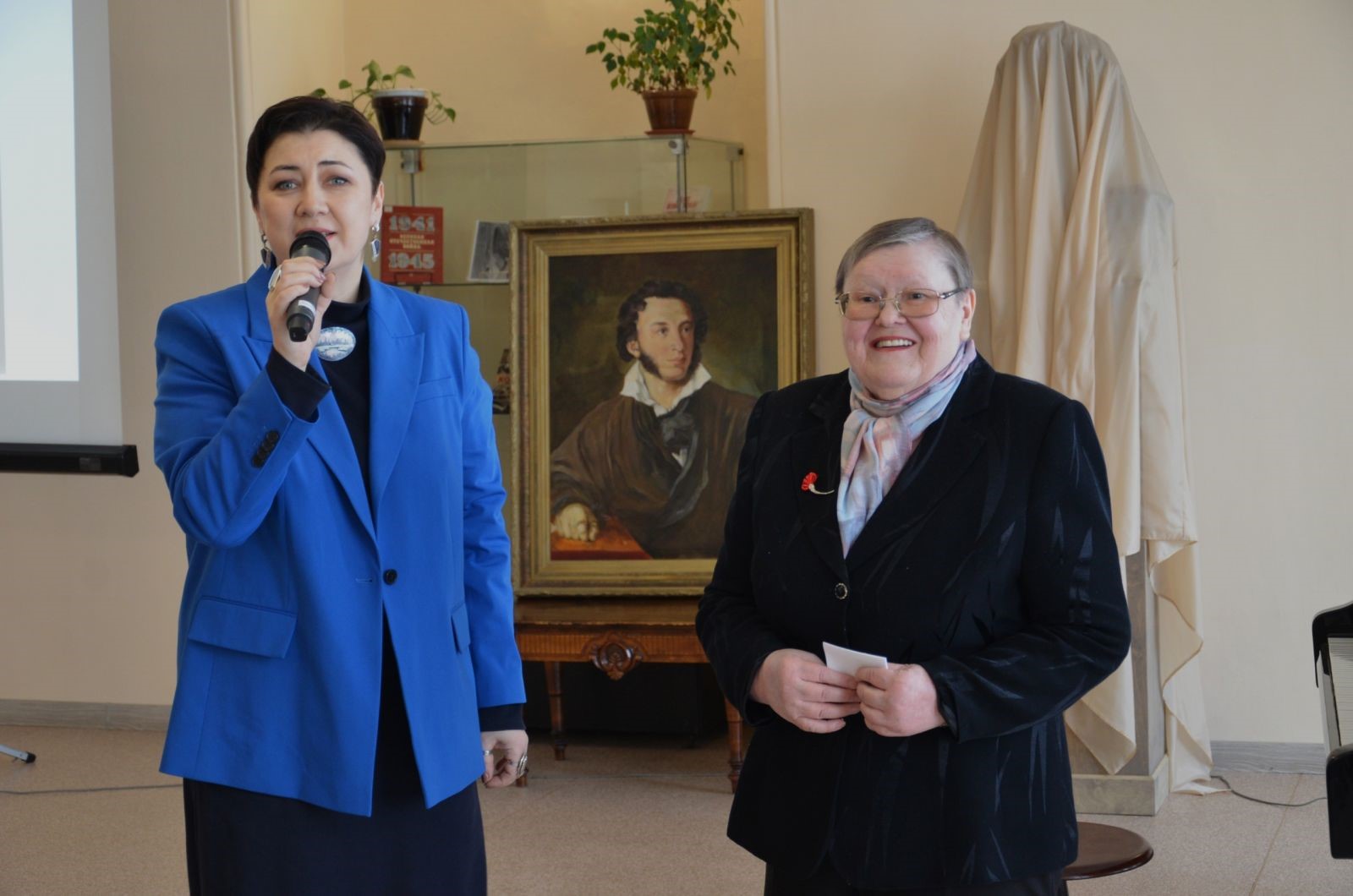 - В рамках творческого вечера в Библиотеке им. А. С. Пушкина произошло торжественное открытие бюста А. С. Пушкина, приобретенного для библиотеки депутатом Законодательной Думы Томской области Галиной Немцевой.